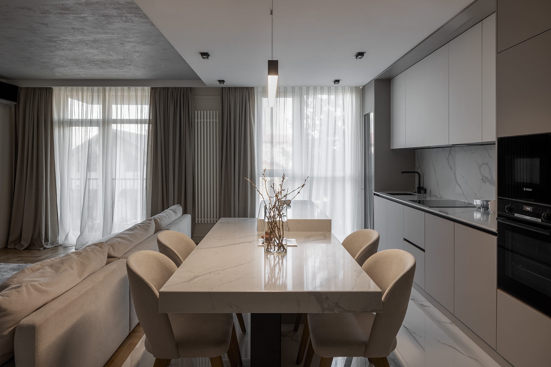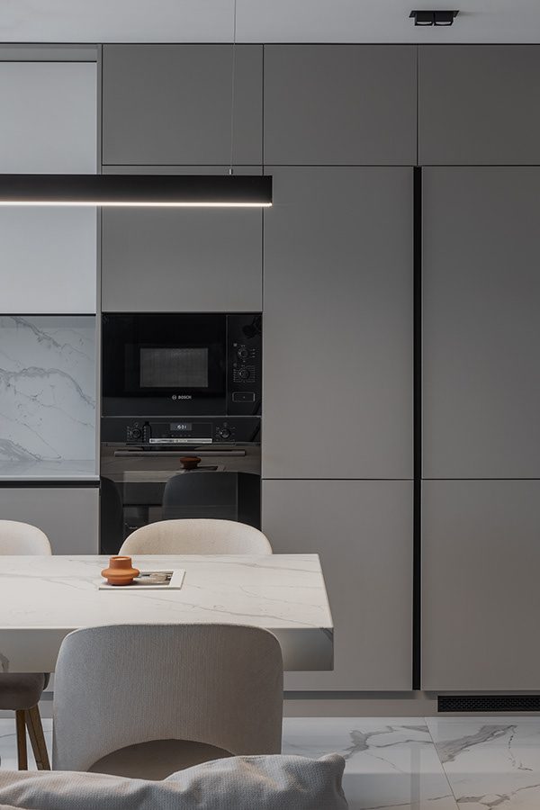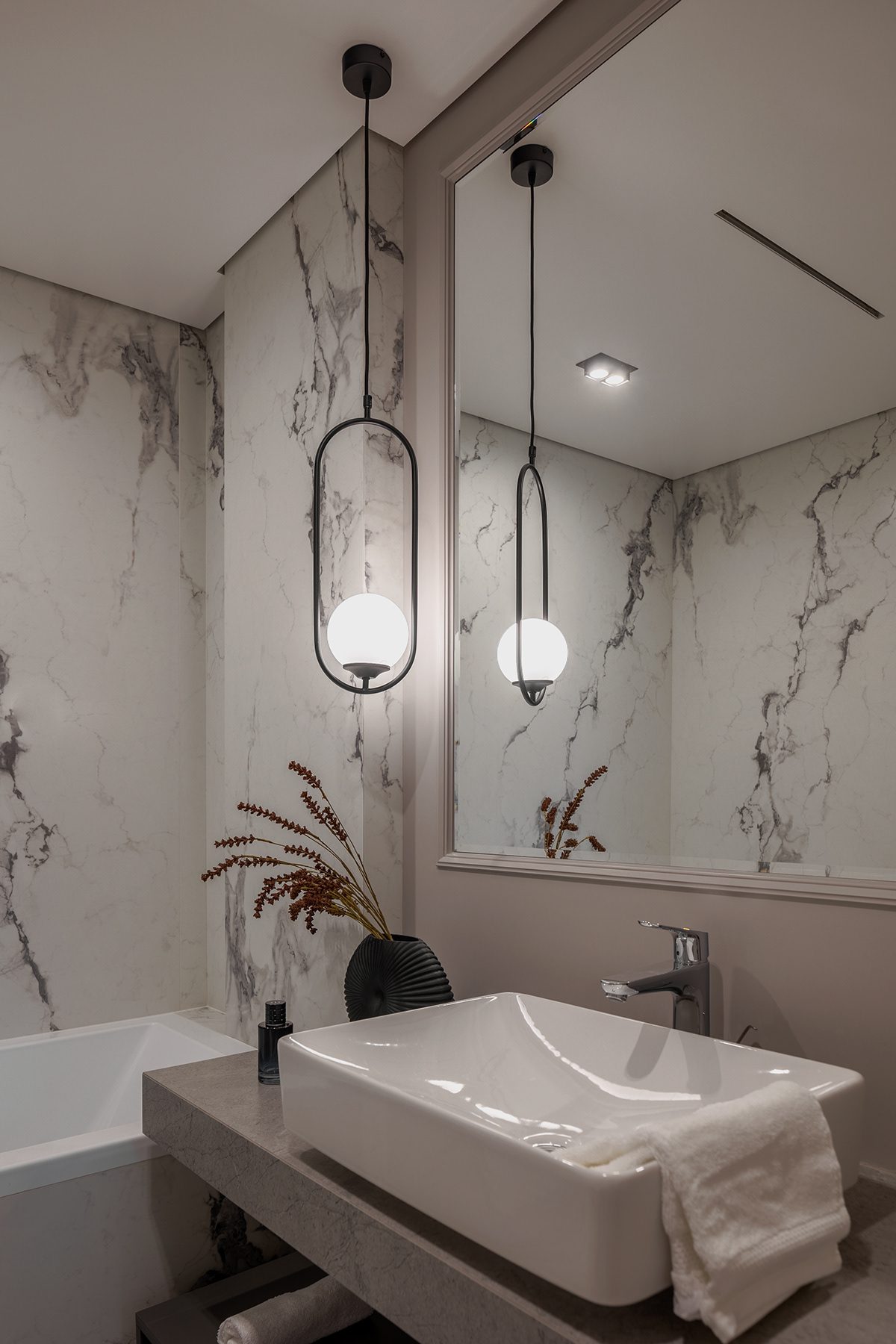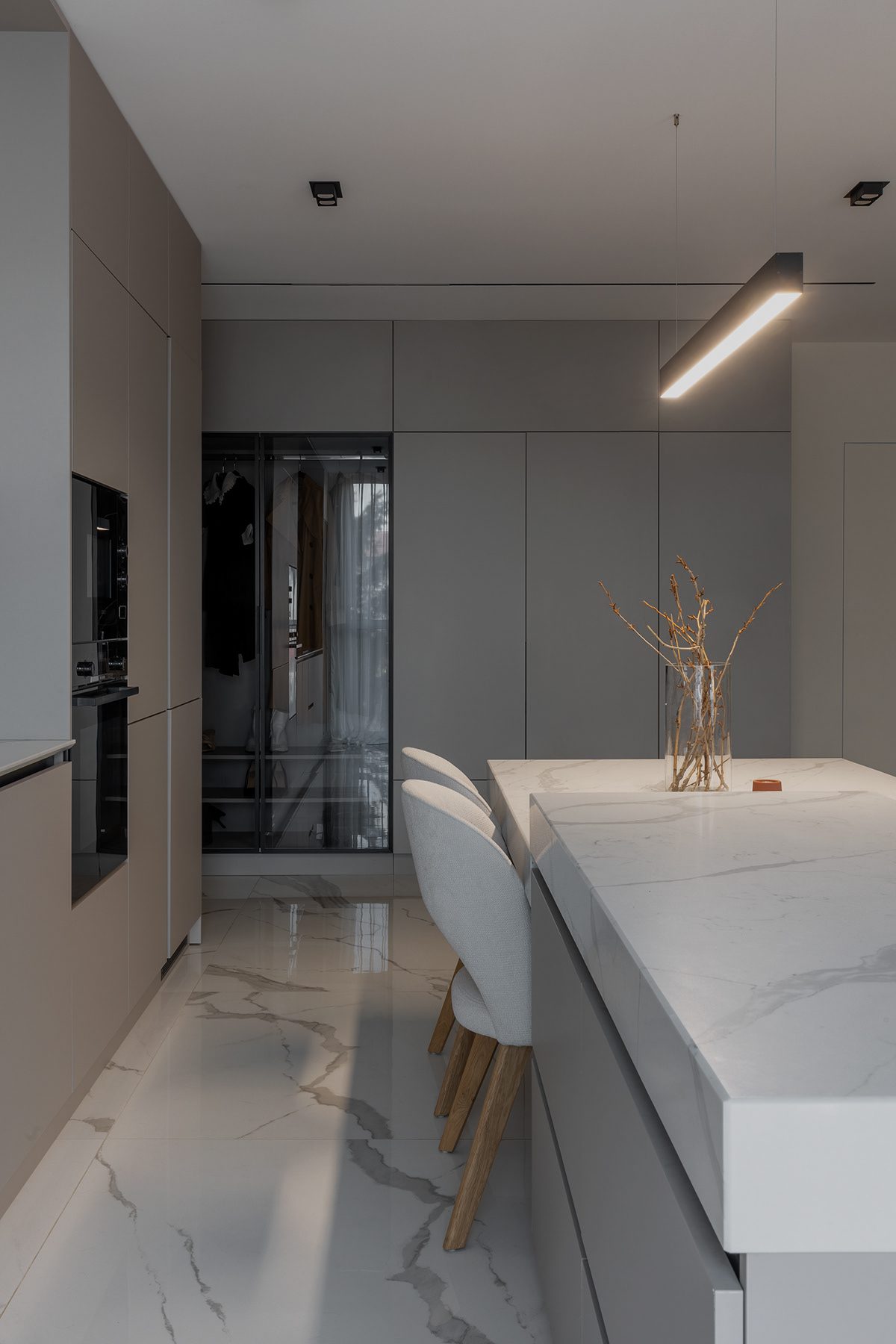 Vật liệu trung tính kết hợp ánh sáng tự nhiên và chiếu sáng nhân tạo được tính toán kỹ lưỡng, mang lại trải nghiệm sống êm dịu và tinh tế.