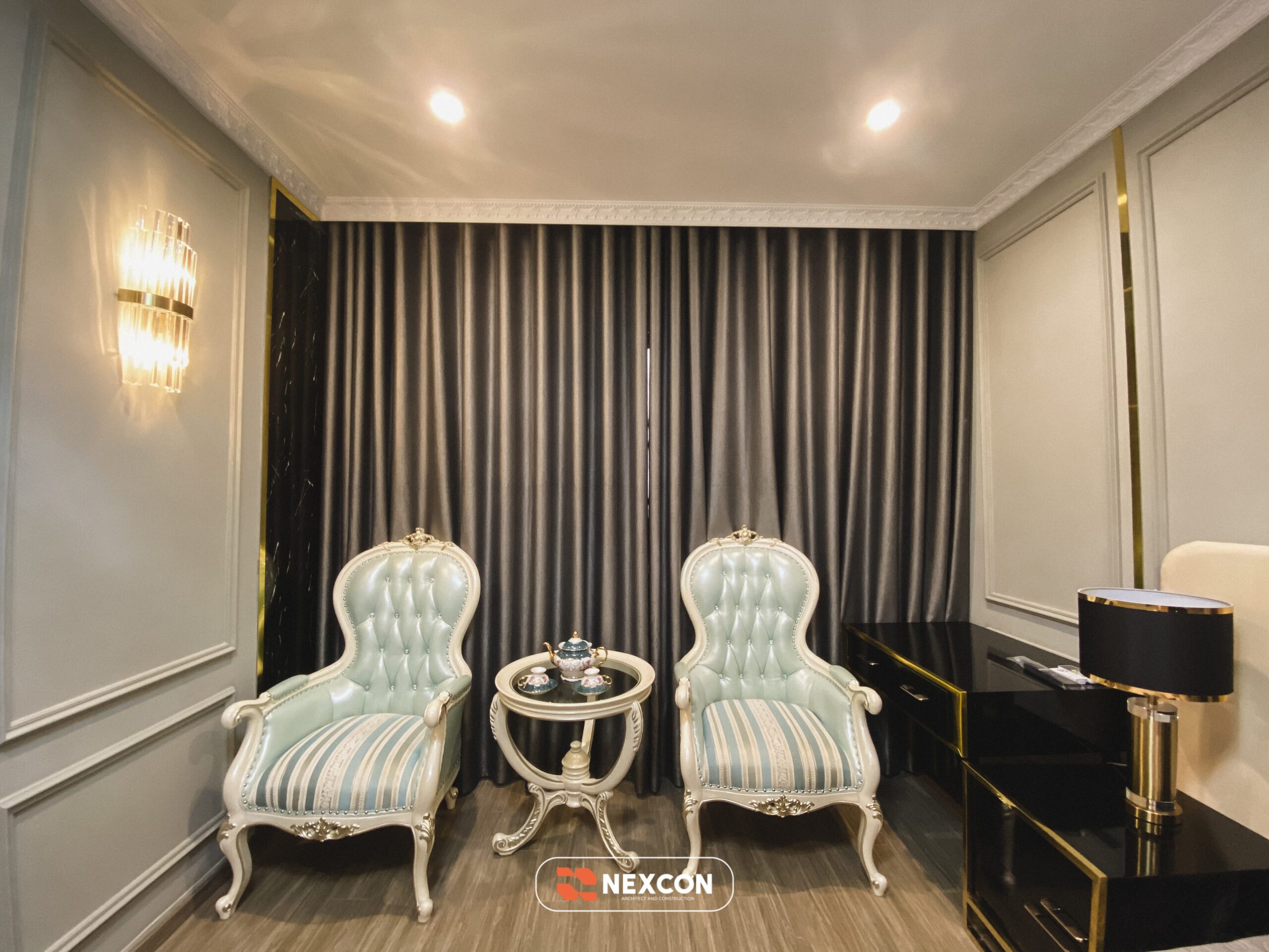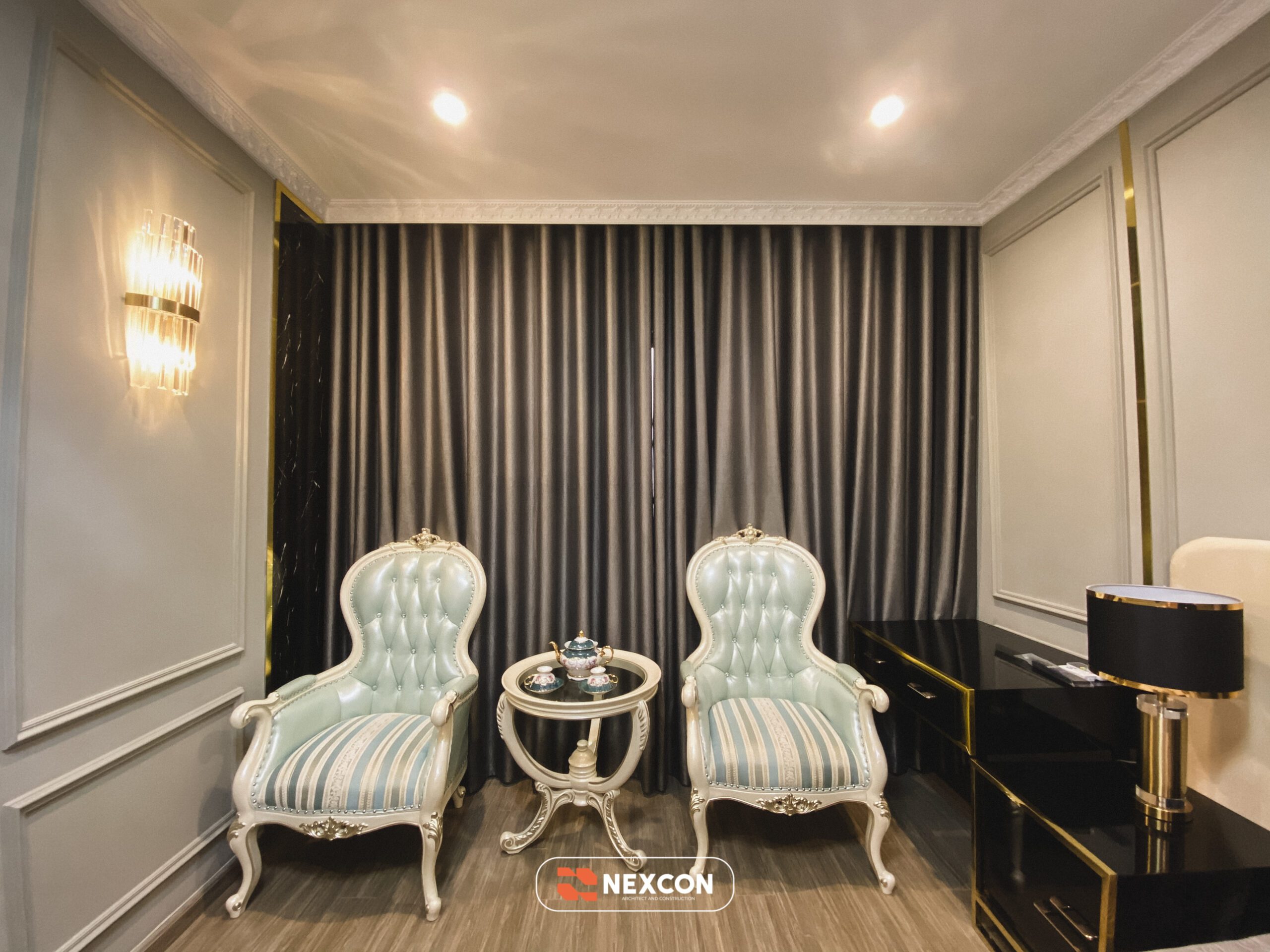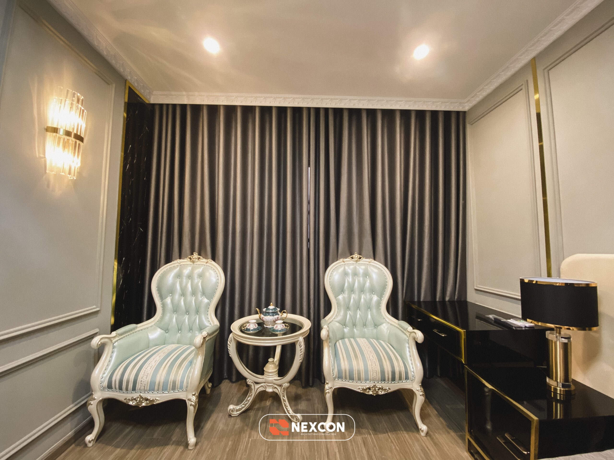 Dự án được xây dựng theo tinh thần tân cổ điển tinh giản, đề cao vẻ đẹp bền vững và sự sang trọng có kiểm soát. Các chi tiết phào chỉ, đường viền ánh kim và mảng ốp trang trí được tiết chế để tạo nên không gian thanh lịch, không phô trương.