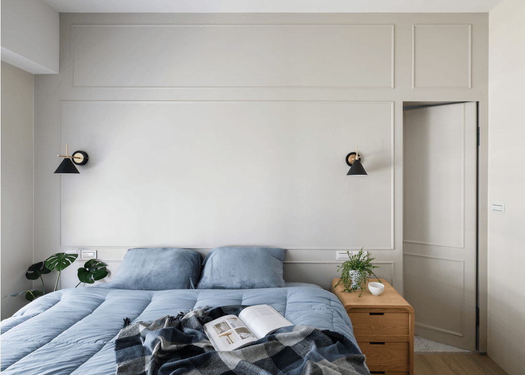 Chất liệu chủ đạo là gỗ tự nhiên sáng màu, vải nỉ mềm mại và bề mặt đá nhân tạo cho bàn, kệ. Bảng màu pastel xanh – trắng – be tạo nên sự dịu mắt, mang lại cảm giác “homey” đặc trưng của một căn hộ Nordic.