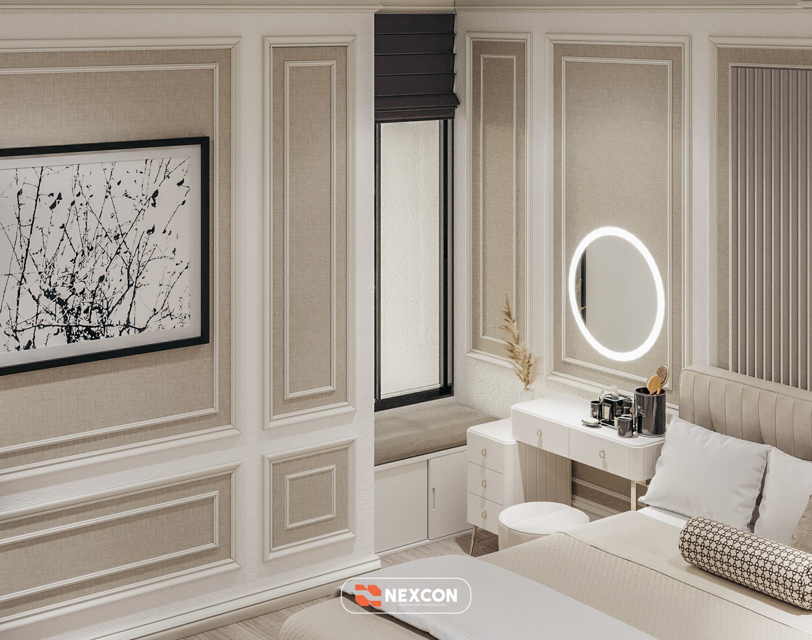 Nội thất Terra An Hưng trong dự án Serene Classic được xây dựng theo tinh thần Modern Classic đương đại. Phào chỉ được tiết chế vừa đủ. Đường nét giữ sự gọn gàng. Không gian tránh cảm giác cầu kỳ.