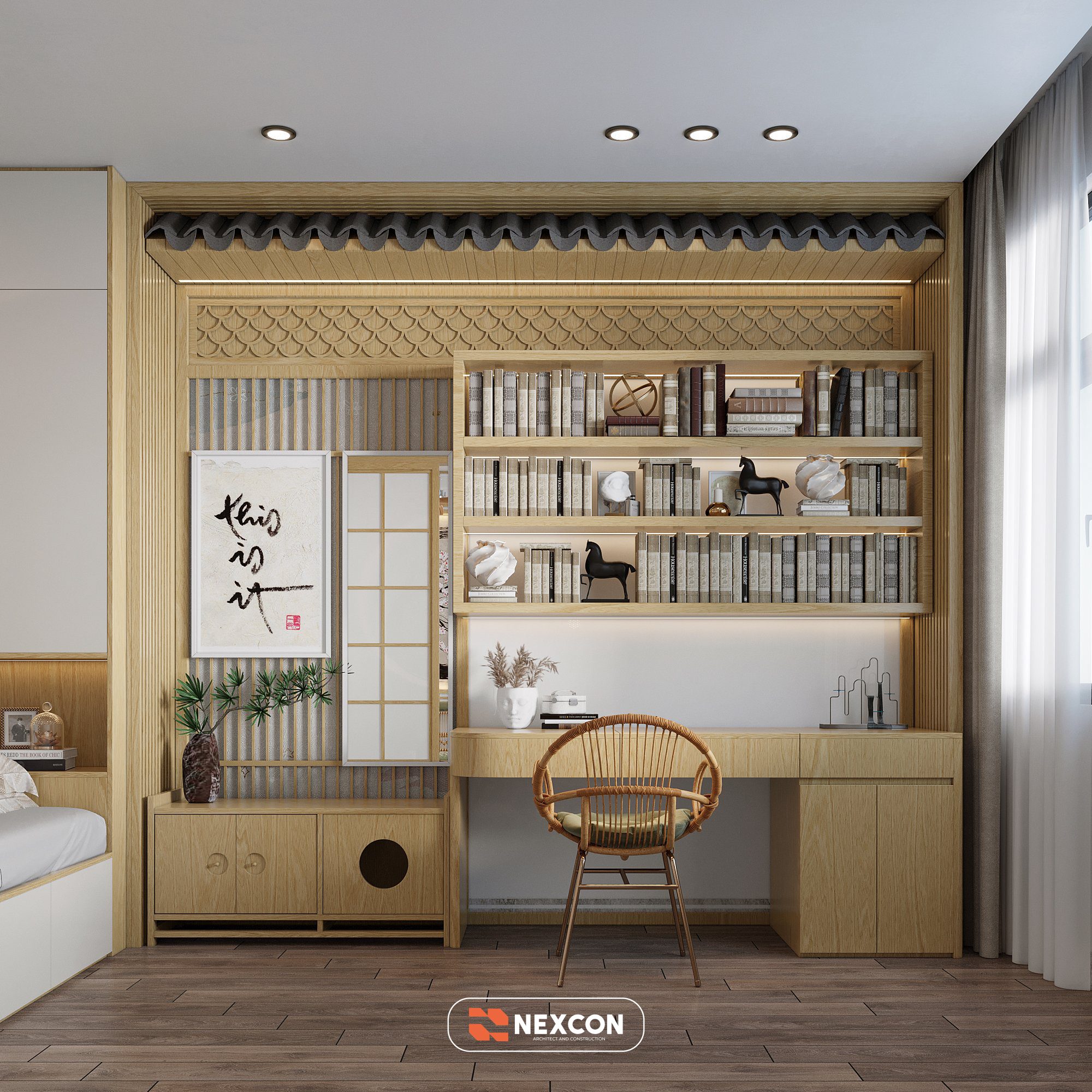 Phong cách Japandi được lựa chọn làm nền tảng. Tinh thần Nhật Bản kết hợp sự ấm áp Bắc Âu. Tổng thể vừa hiện đại vừa gần gũi.
