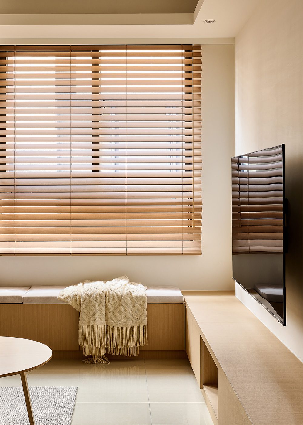 Ánh sáng tự nhiên đóng vai trò chủ đạo. Hệ đèn nhân tạo sử dụng ánh sáng ấm, tạo chiều sâu cho không gian. Vật liệu được lựa chọn dựa trên độ bền và cảm giác sử dụng lâu dài.