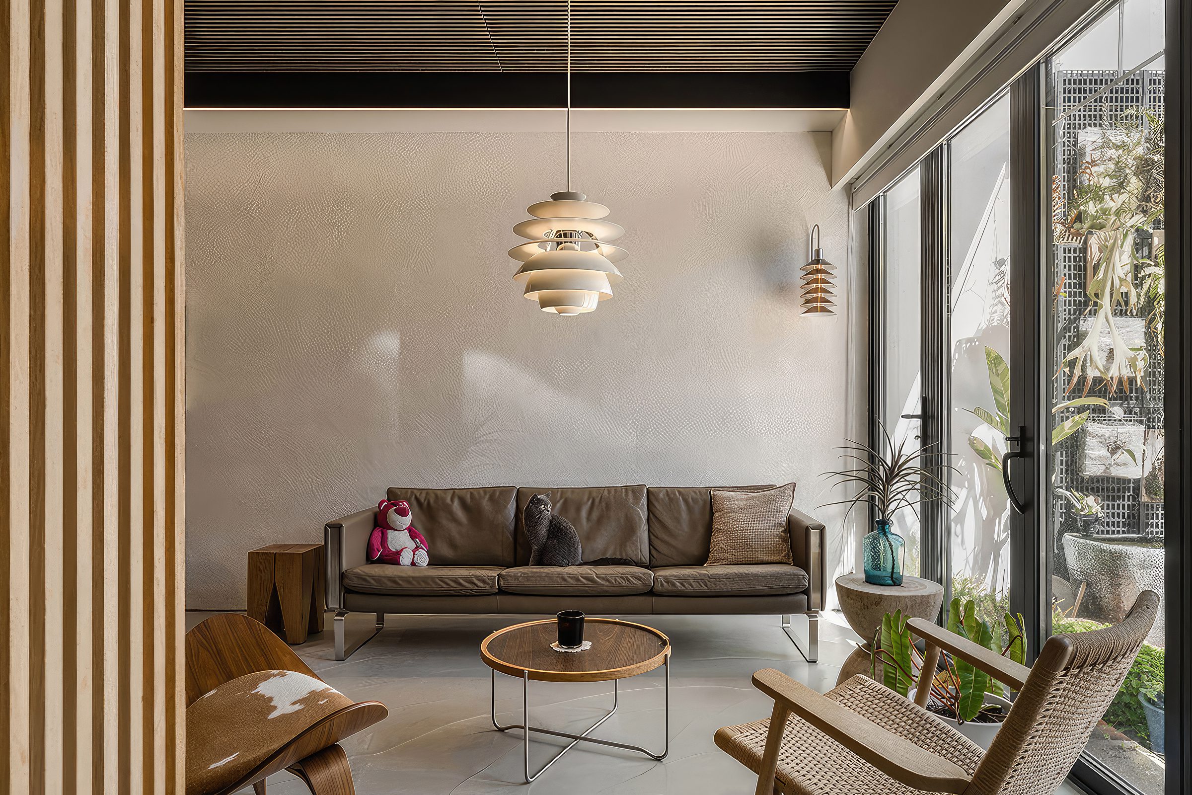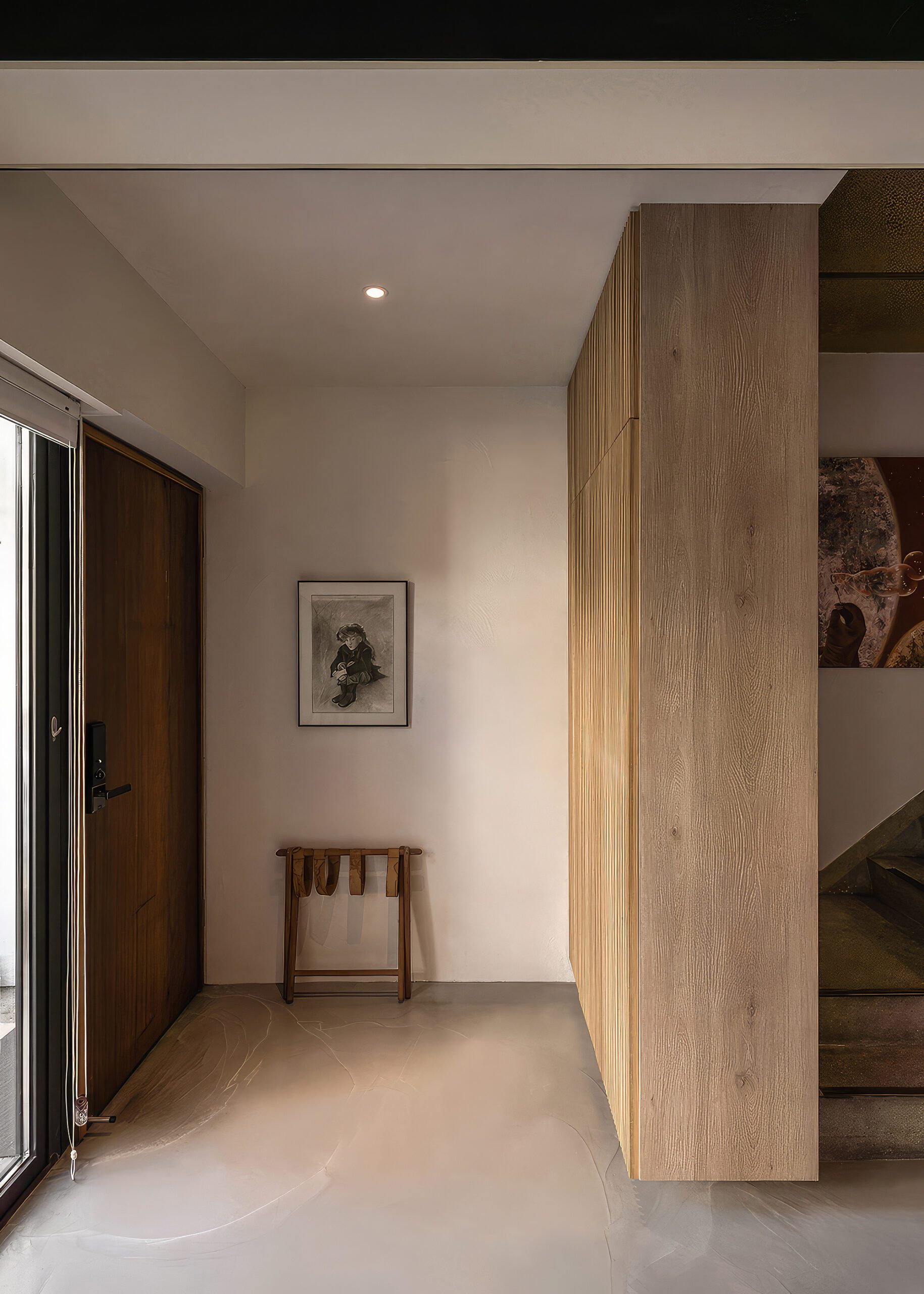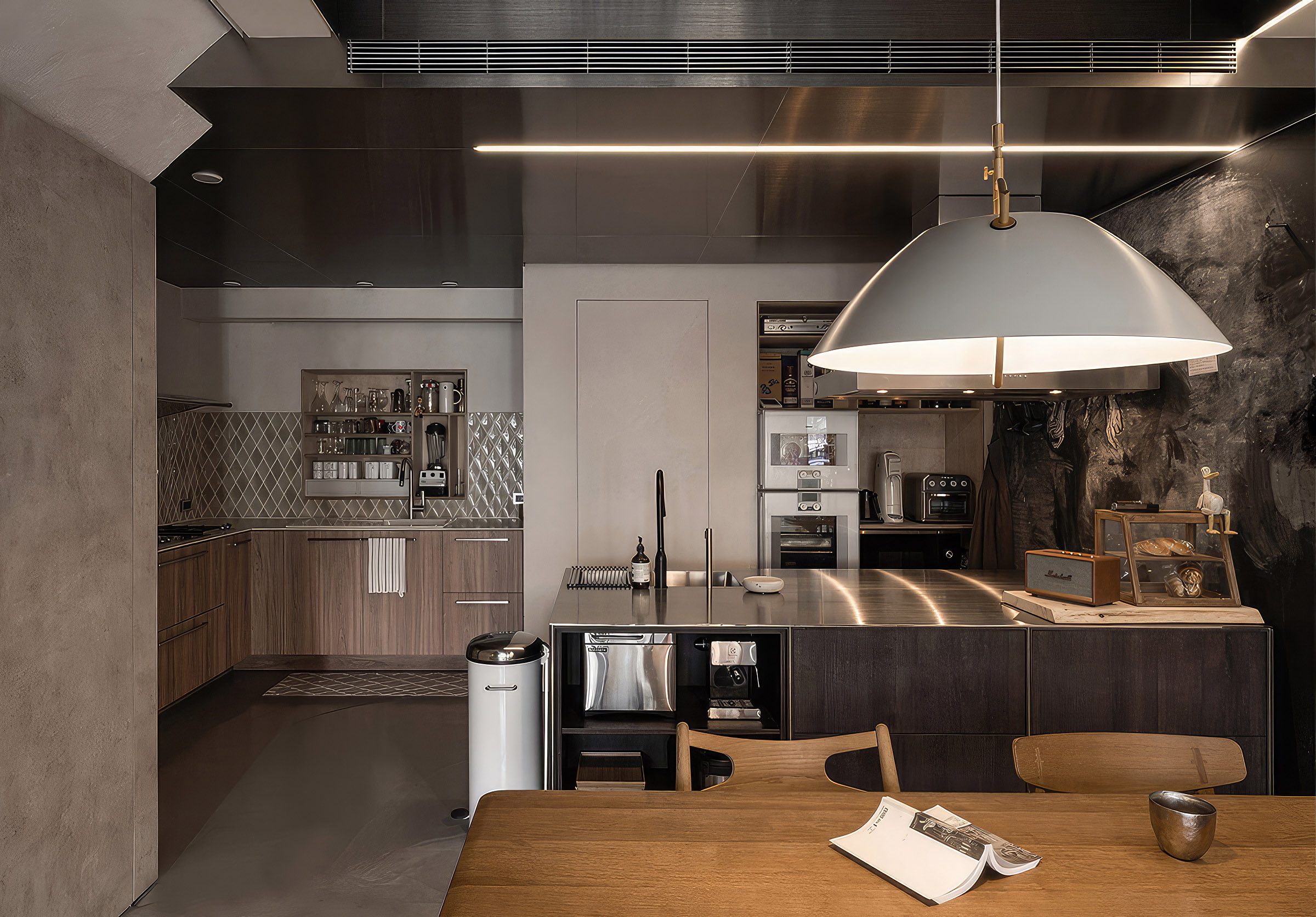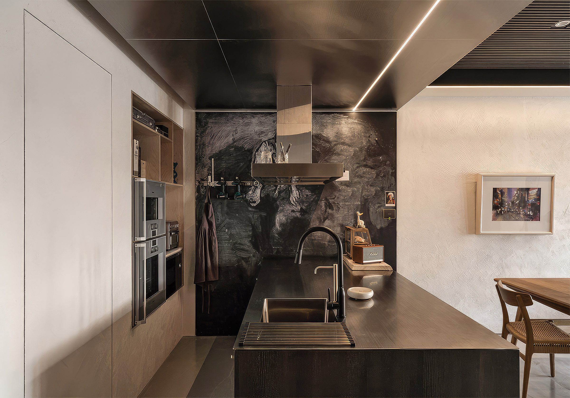 Thiết kế sử dụng bố cục mở và mảng khối rõ ràng. Vật liệu thô được xử lý tinh tế. Ánh sáng đóng vai trò dẫn dắt thị giác. Phong cách loft được tiết chế để phù hợp với sinh hoạt gia đình.