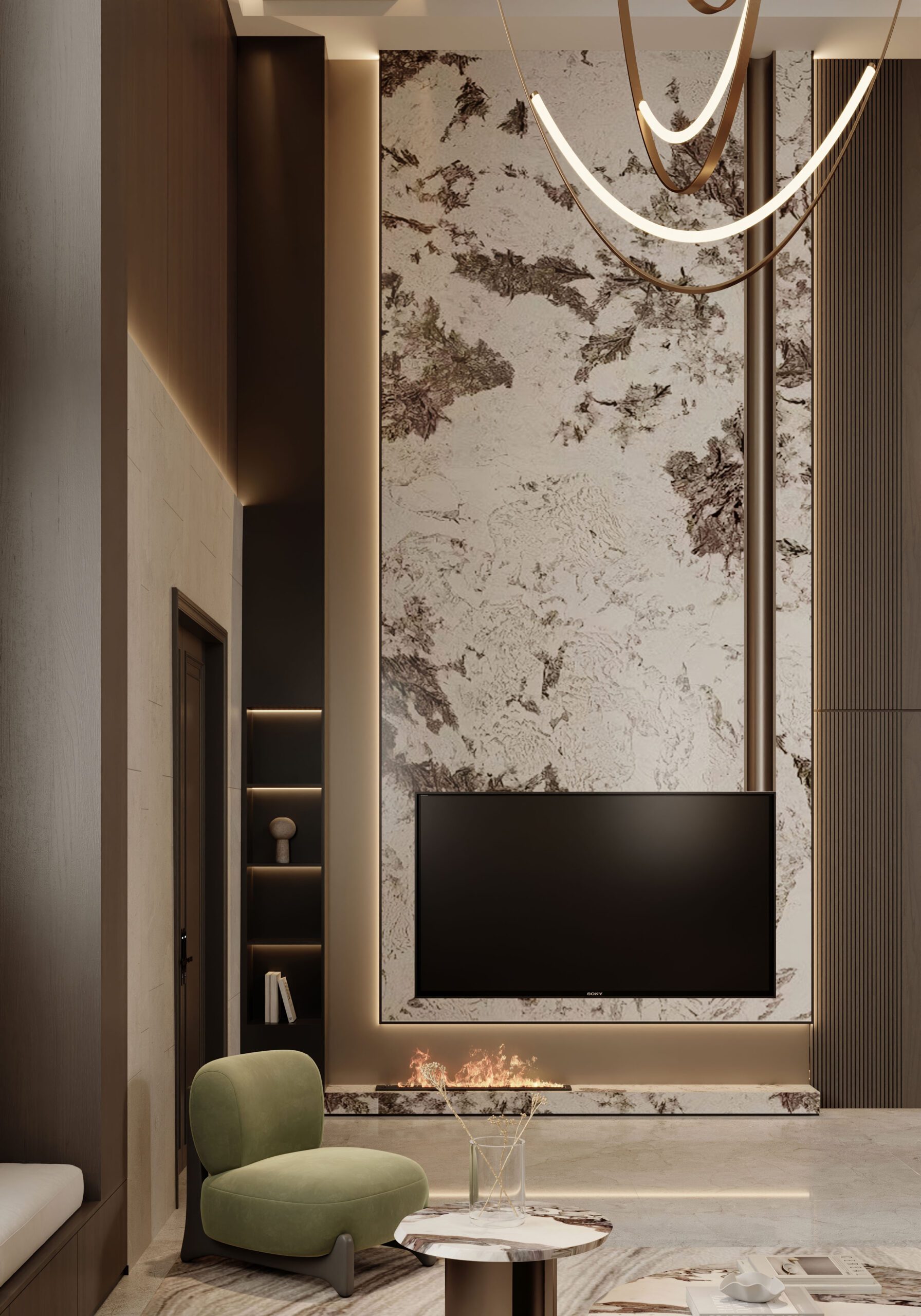 Hệ tủ âm tường giúp không gian luôn gọn gàng. Mỗi chi tiết đều phục vụ trải nghiệm sống lâu dài.