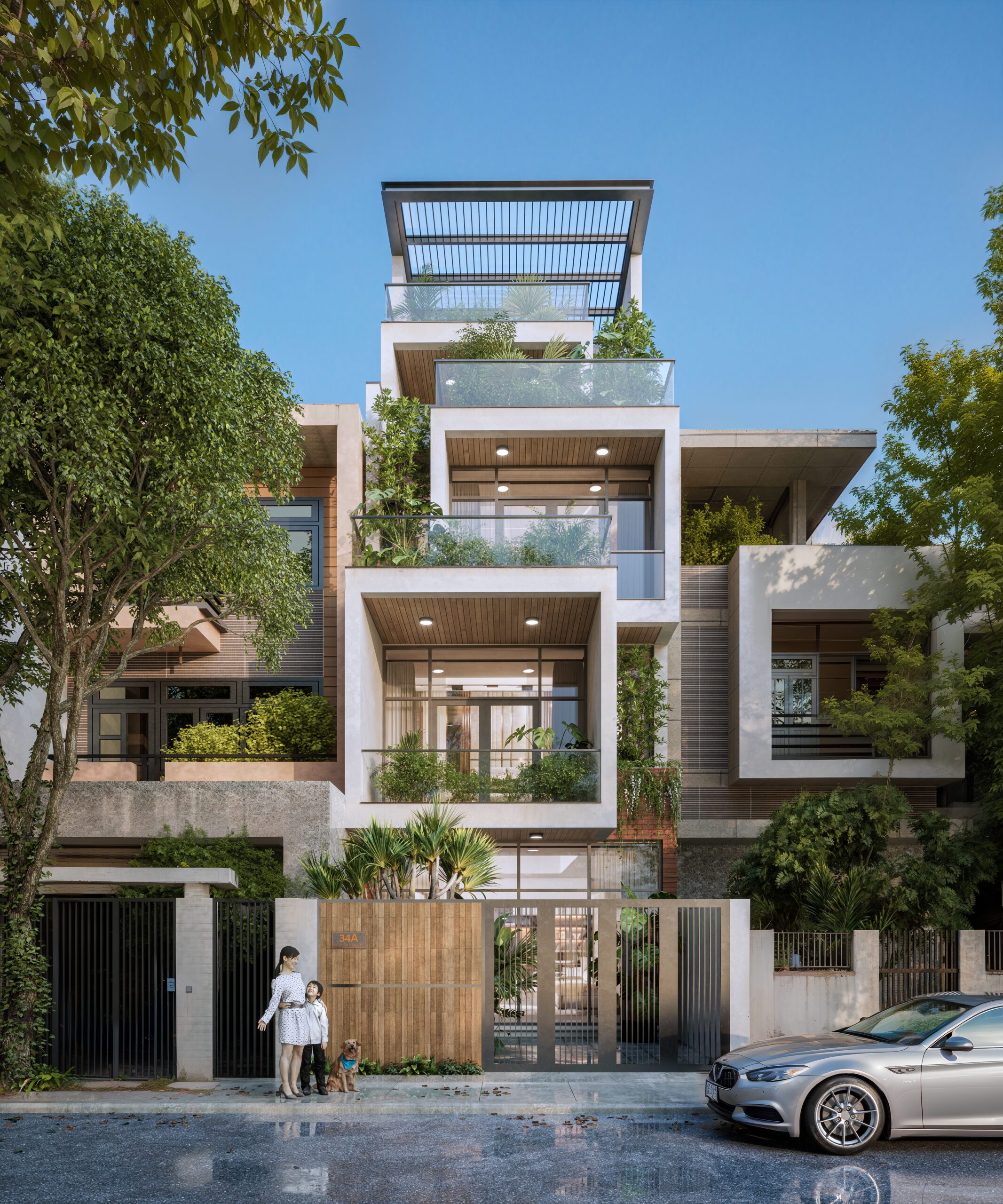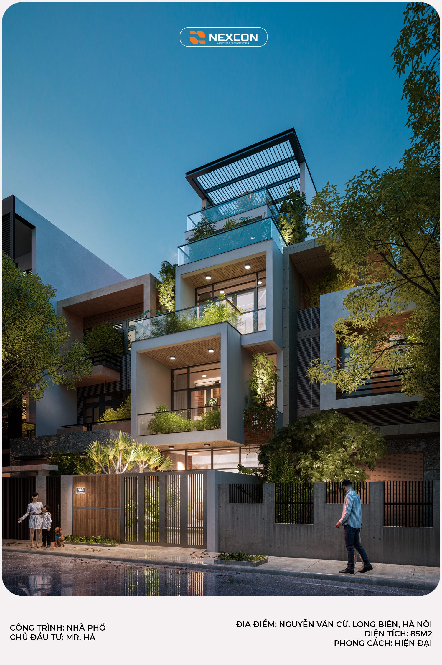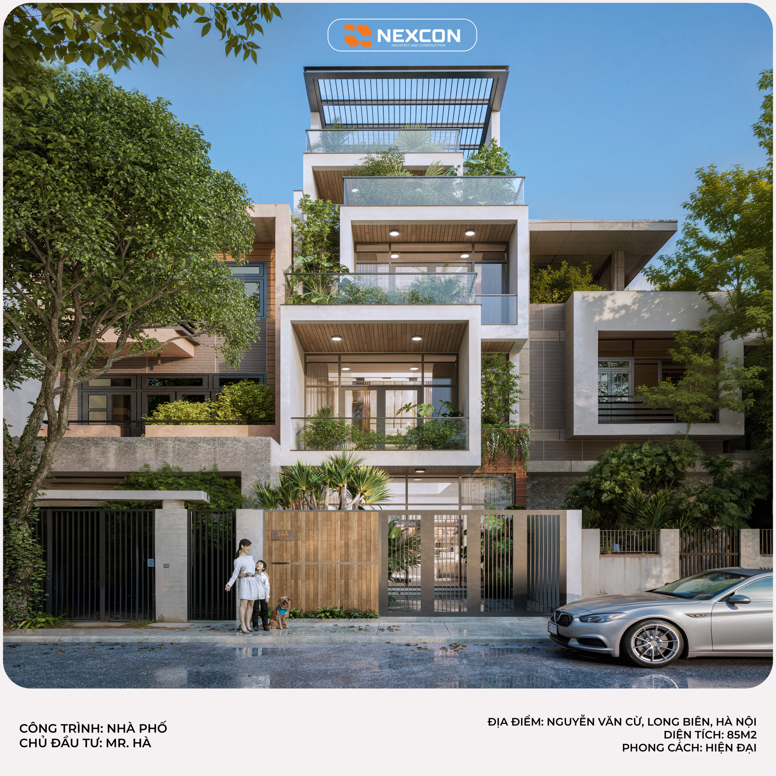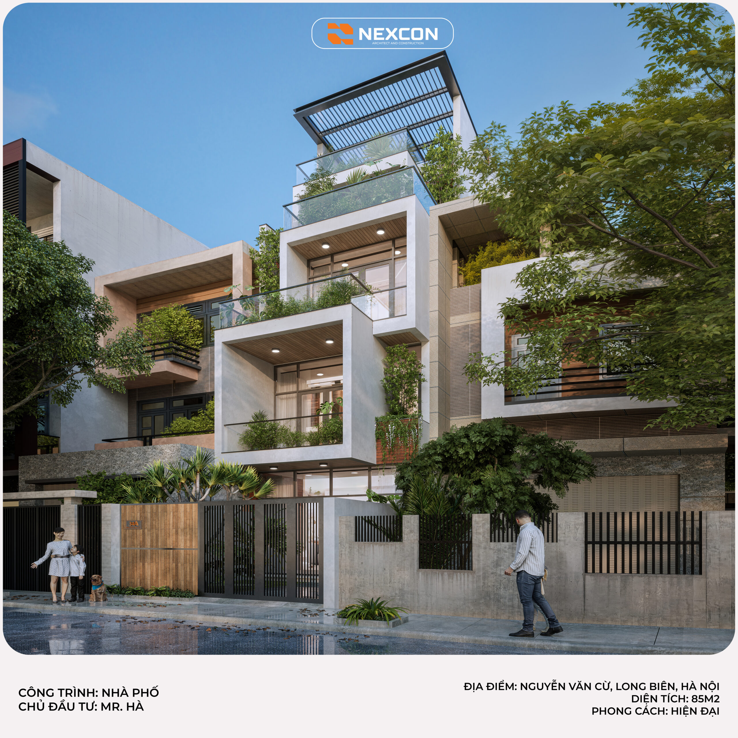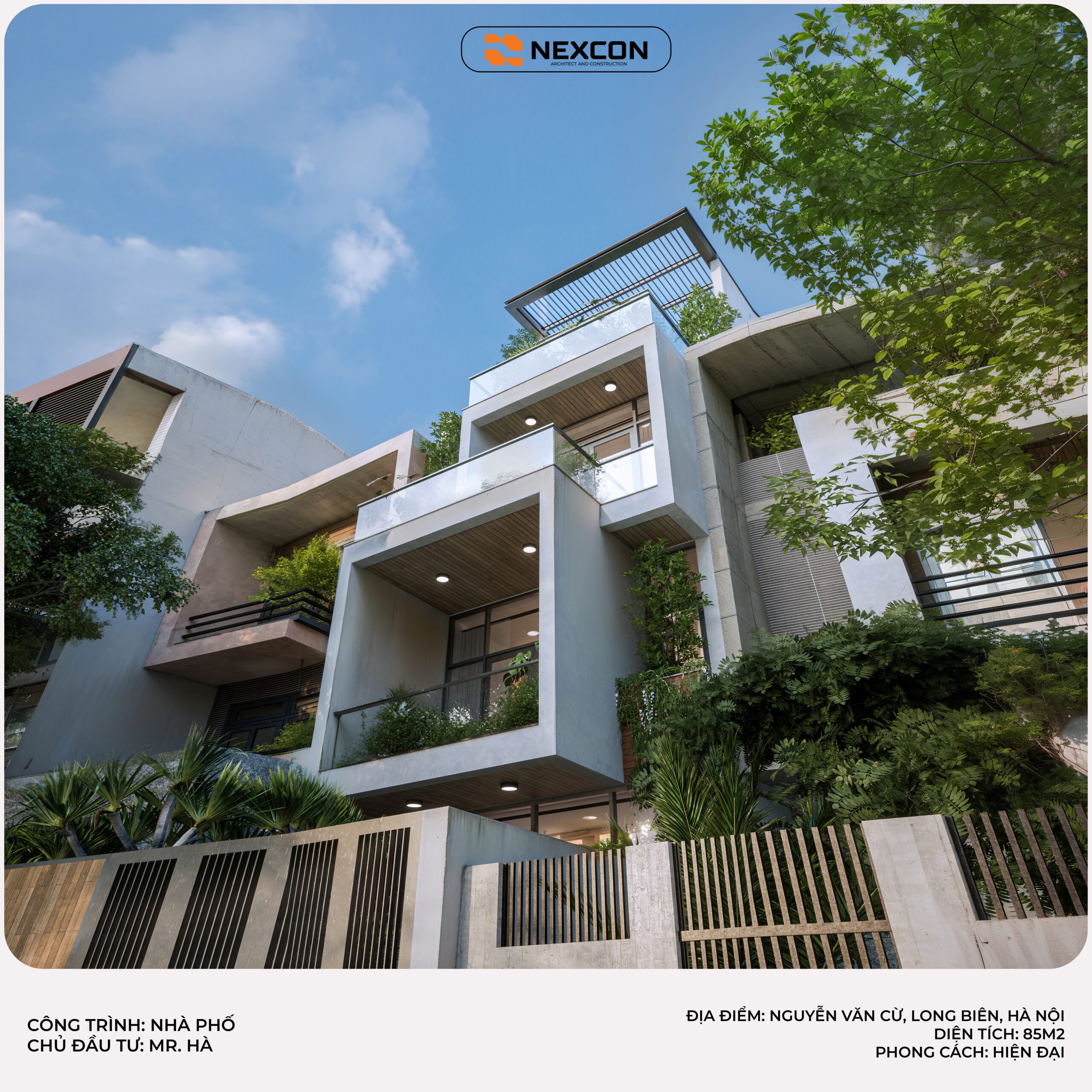Nhà phố Mr. Hà tại Long Biên được thiết kế theo phong cách hiện đại, nổi bật với mặt tiền xếp lớp và ban công xanh. Công trình tối ưu ánh sáng, thông gió và không gian sống. Thiết kế hướng đến sự bền vững và tiện nghi cho gia đình đô thị.