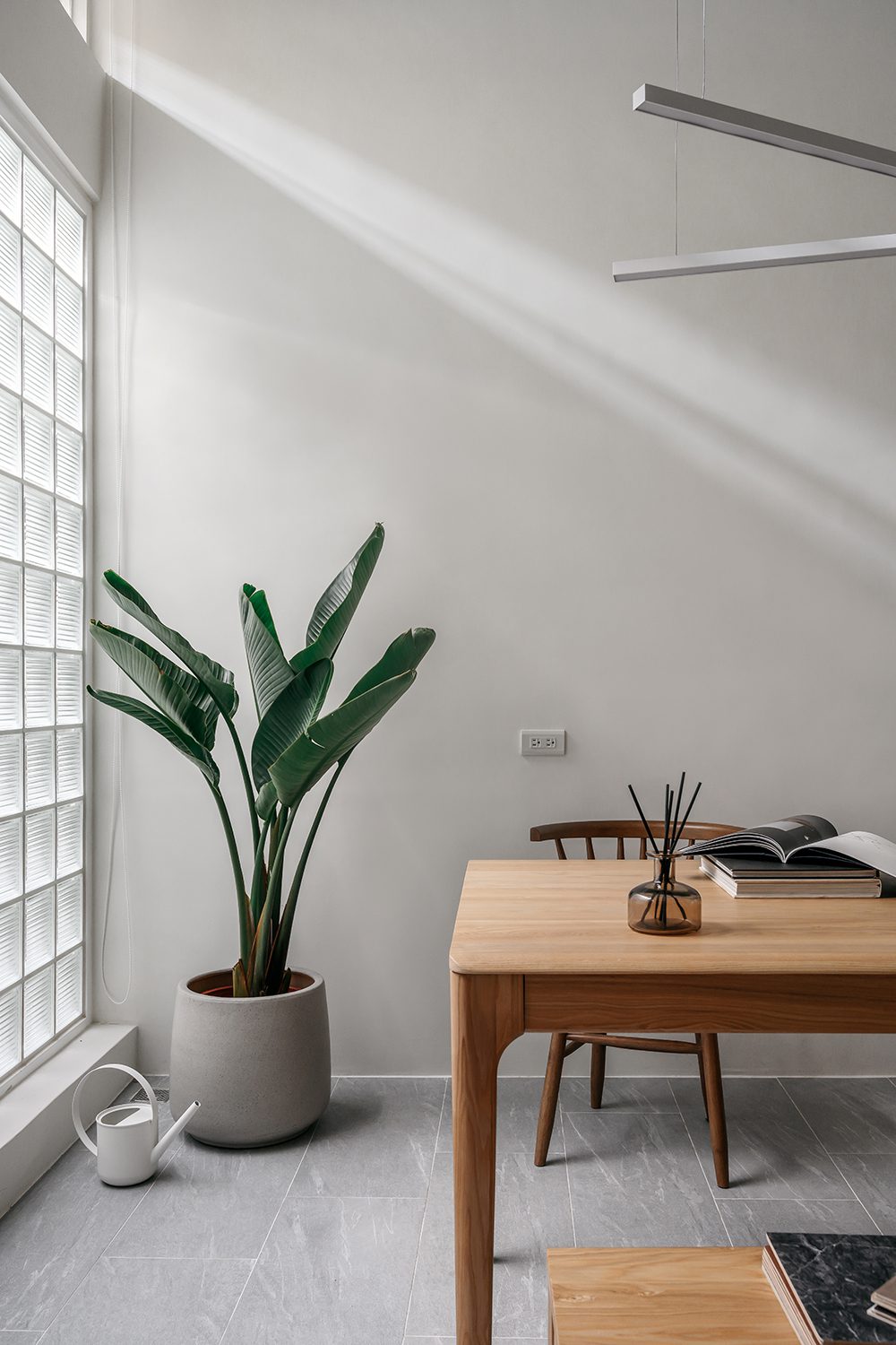 Phong cách tối giản được thể hiện rõ qua đường nét kiến trúc đơn giản, hạn chế đồ nội thất dư thừa và sử dụng bảng màu trung tính xuyên suốt toàn bộ ngôi nhà.
